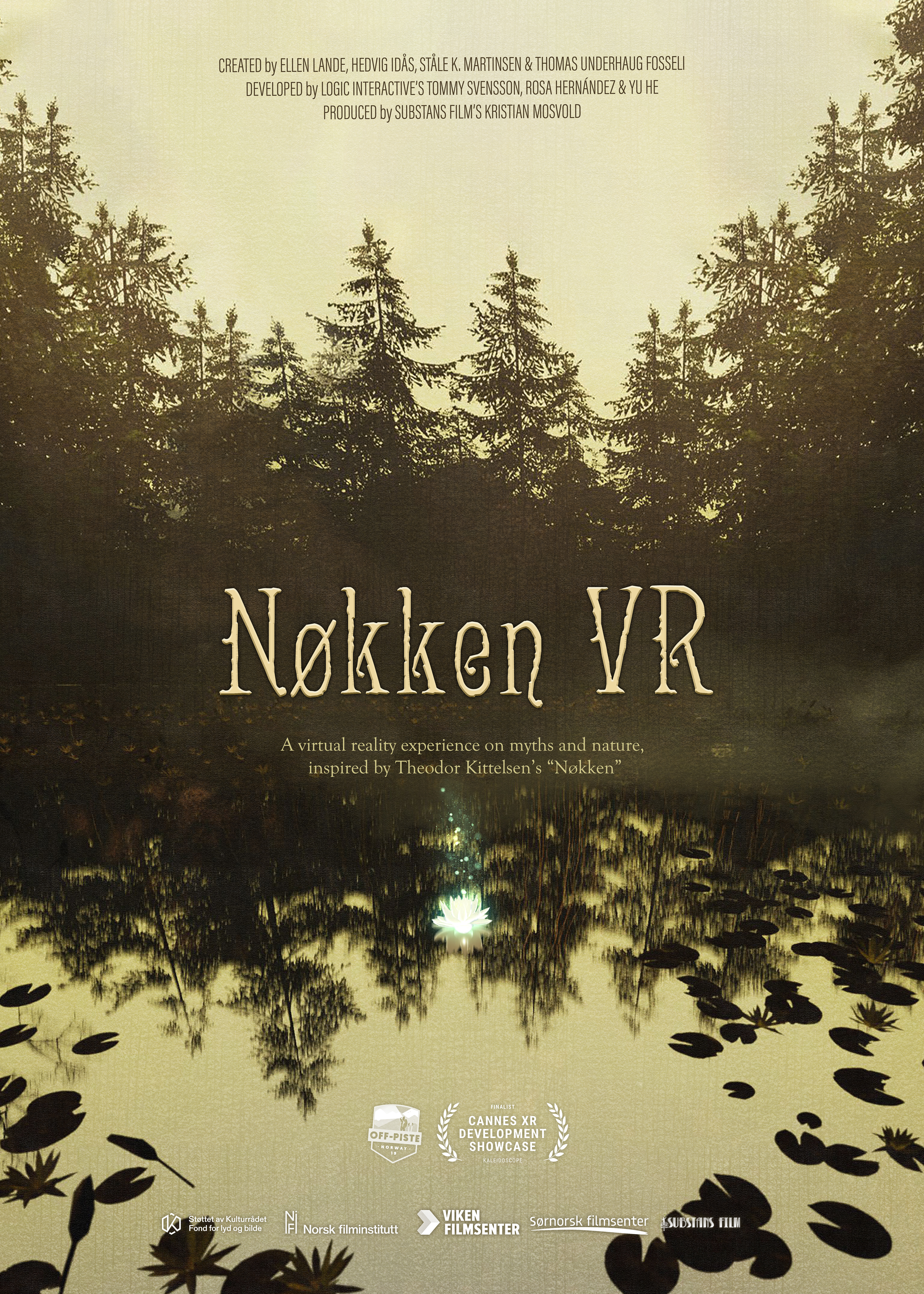 Our team all met as participants in the Off-Piste 2019 VR Lab, a crossover lab for those fascinated with VR. Here the urgent climate crisis made us reinvent the known tale. Theodore Kittelsen, a Norwegian painter was the first to give images to the folk tale creatures, such as the Water Sprite, Nøkken, but also trolls and other shapeshifters. The scary story of the luring Nøkk was once told to prevent children from drowning.