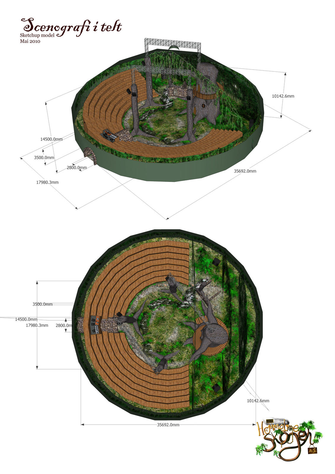 Original stage design placed in a theatre tent
